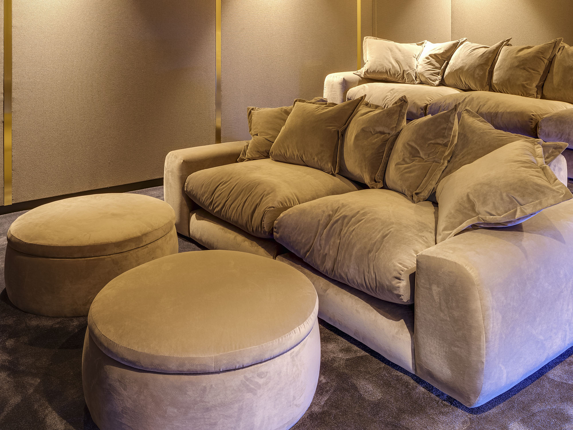 Descend to the professional cinema room — a true highlight — with a 120-inch 4K screen, immersive surround sound and plush sofas for a full cinematic experience. Watch a blockbuster on Apple TV or choose from an extensive curated movie library.