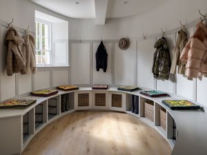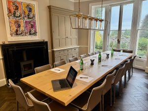 A second sitting room, known as the withdrawing room, offers a cosier space with a 65-inch Samsung Frame Smart TV, deep sofas, and another log-burning fire. Both rooms provide flexible, comfortable environments for group or family use.