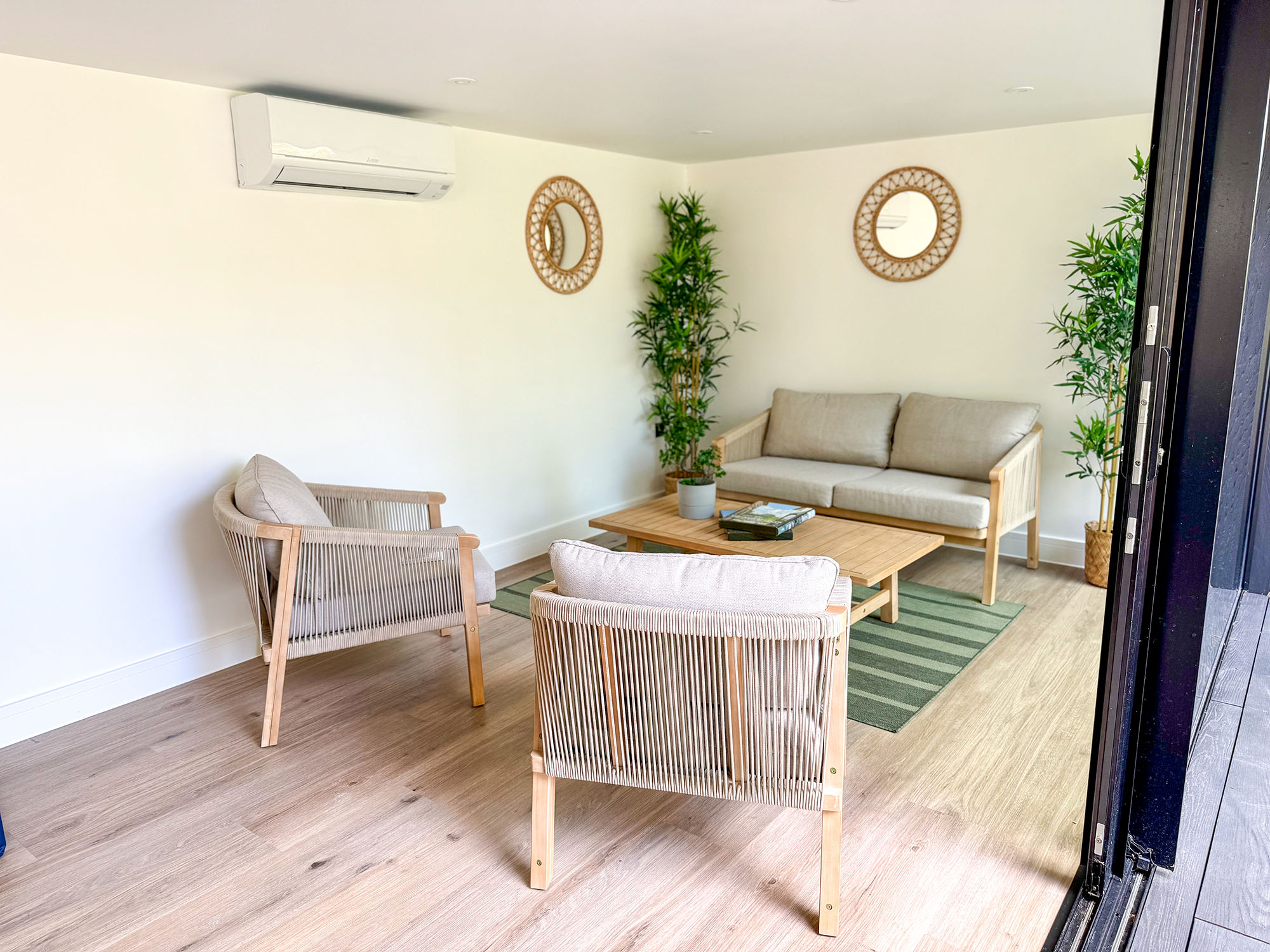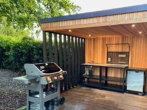 - Outdoor kitchen with Weber BBQ & drinks fridge